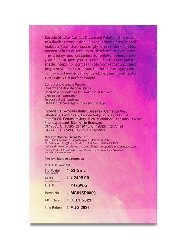 Recode Beauty Concealer, Colour Corrector & Contour Palette – 52 G